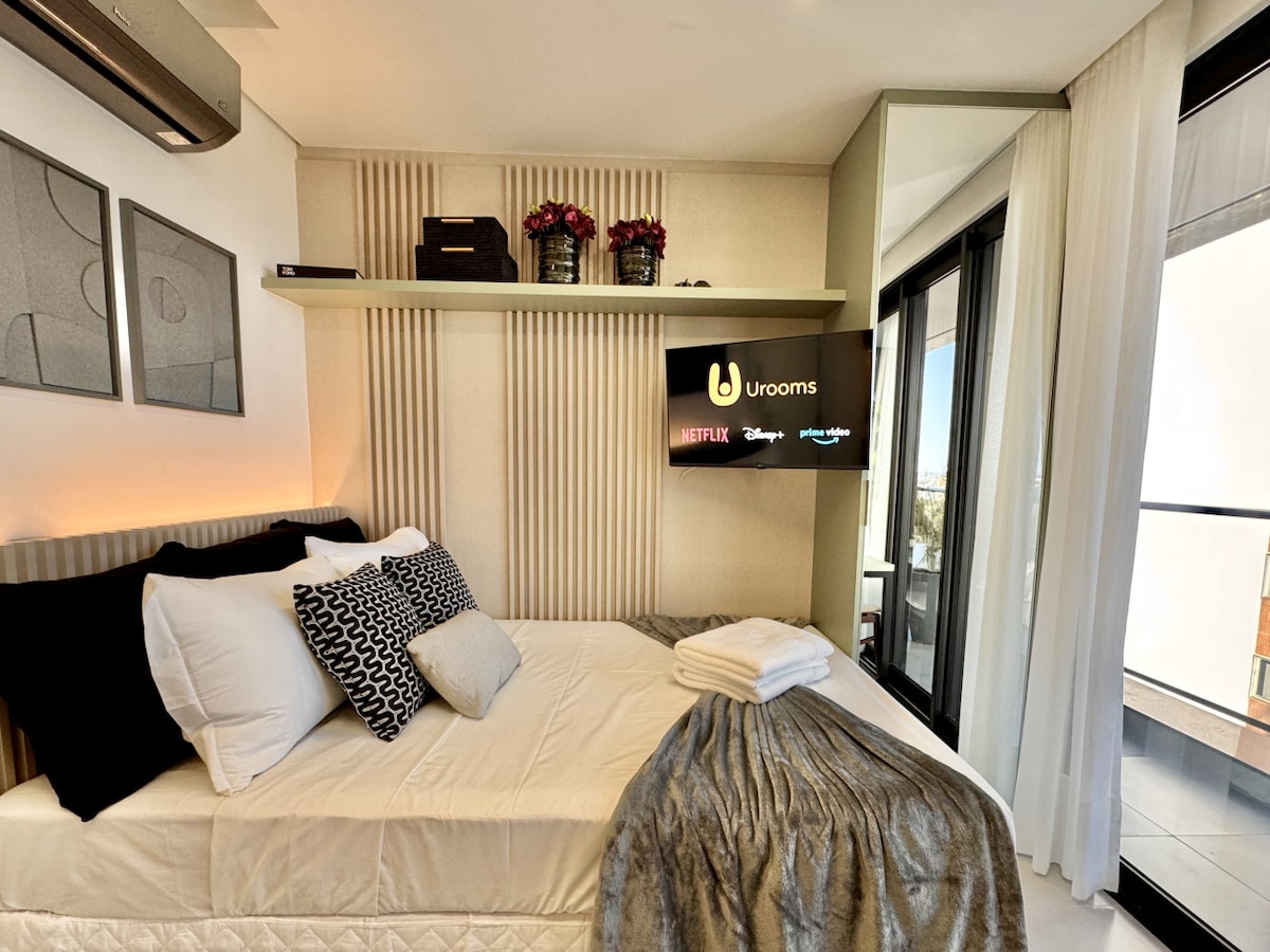 Studio Relax 24° andar+A/C+Garagem+Pisc Aquec+Acad