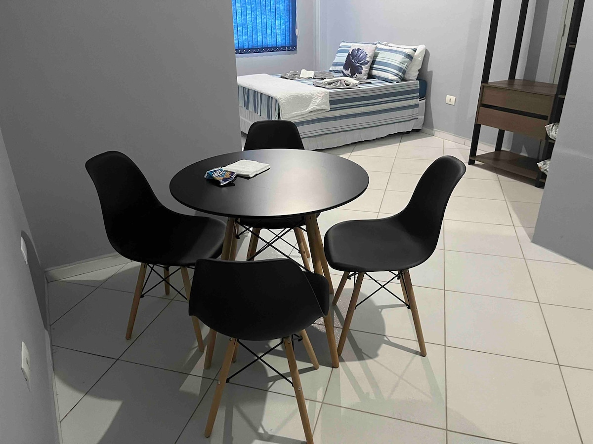 Praktischer und gemütlicher Raum mit allen grundlegenden Küchenutensilien, 2 Fernsehern, einem im Wohnzimmer und einem im Schlafzimmer, mit mehreren Kanälen und Apps. In der Nähe des städtischen Marktes, der Kathedrale von Joinville, der Rua das Palmeiras, Geschäften, Banken, direkt im Herzen der Stadt. Ruhiger und angenehmer Ort, mit eigener Garage. Ein leicht zugänglicher Ort, an dem du dich zu Fuß fortbewegen kannst, ohne dir Sorgen um den Verkehr zu machen. Hinweis: Es hat einen eigenen Parkplatz, aber für ein kleines Auto