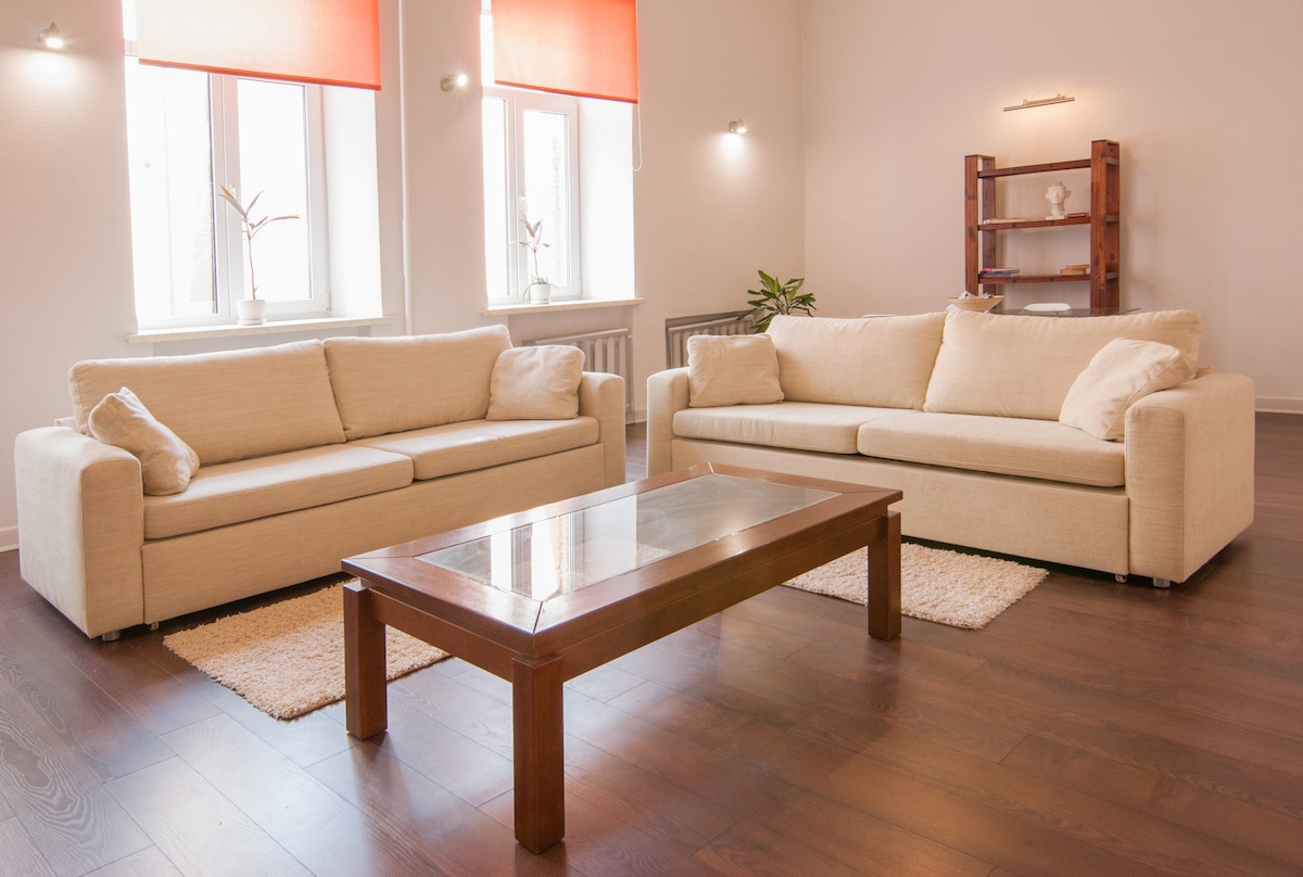 Modern apartment in the heart of the city with two spacious bedrooms. Thanks to its convenient location in the exact city center, the apartment is ideal for both business visits and tourist purposes or just as a place for a comfortable stay. The flat has everything you need for a comfortable stay: two comfortable large double bed, modern shower and toilet with heated floors, cozy kitchen and living room and all necessary accessories (coffee machine, hair dryer, iron, washing machine, towels...).