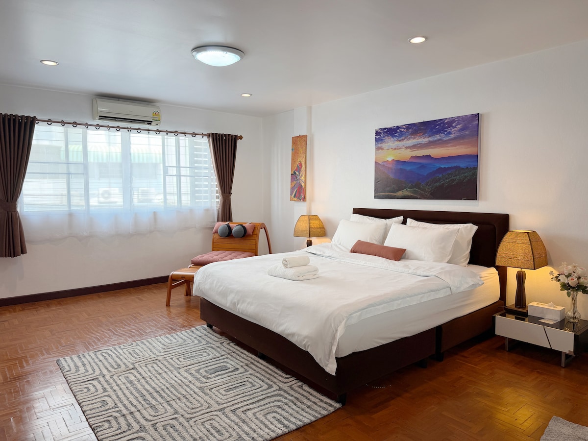 Stay in central Nimman. Easygoing, clean & bright 2 bedroom 2 bathroom townhouse. 💛A Charming & simple setup for relaxing short or long trips with kitchen. A cozy place at a convenient location, just walking distance to cafes, malls, restaurants, massages and Taxi points. ✨Discount for 7+ nights! With Electricity & water charged only by pay-per-use meter 👍 Stays 1–6 nights : No utility charges if usage is within the limit. No worry,it’s more than enough for a comfortable stay.