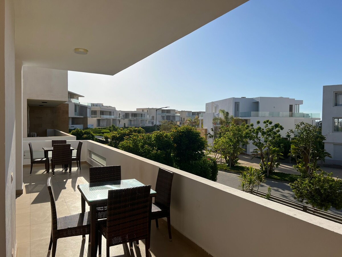 Willkommen an Ihrem perfekten Urlaubsort im Herzen von New Alamein City! Diese moderne, voll möblierte Wohnung ist ideal für Familien oder Freunde, die einen erholsamen Urlaub oder einen unterhaltsamen Strandurlaub an Ägyptens atemberaubender Nordküste suchen🌊 (متاح ايجار سنوي) (Verfügbar für Jahresmiete) • voll ausgestattete Küche •Balkon mit Blick auf die Türme •Klimaanlage in allen Zimmern •WLAN + Smart-TV •24/7 Sicherheit + Parkplatz .Sofa offenes Bett