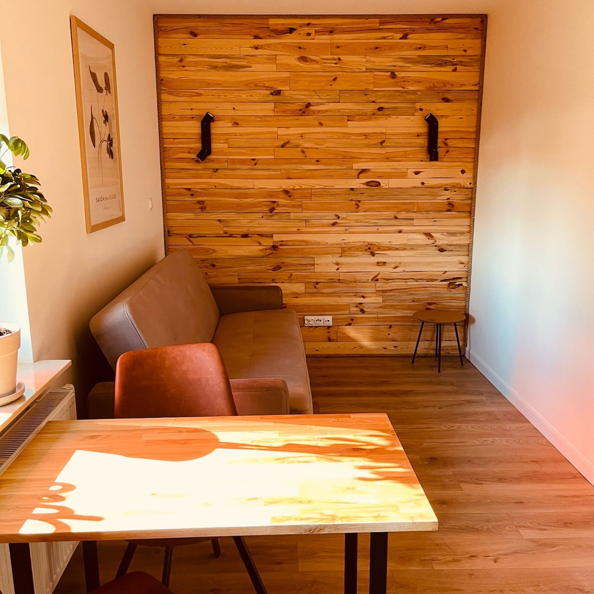 Entspannen Sie sich in einer modernen, stimmungsvollen Wohnung mit einer großen Terrasse, genießen Sie Ihren Morgenkaffee im Freien in einer friedlichen und ruhigen Nachbarschaft. Unsere motorisierte Wohnung befindet sich buchstäblich 10 Gehminuten vom Zentrum entfernt und verfügt über einen Parkplatz vor dem Block. Perfekt für Singles, Paare und Freunde. Wir freuen uns auf deinen Besuch! Ausstattung : Ausziehbare Couch Frische Bettwäsche große Bettdecke 200*220 Kühlschrank Kaffee, Tee, Zucker Wasserkocher Duschgel Handtücher Terrasse