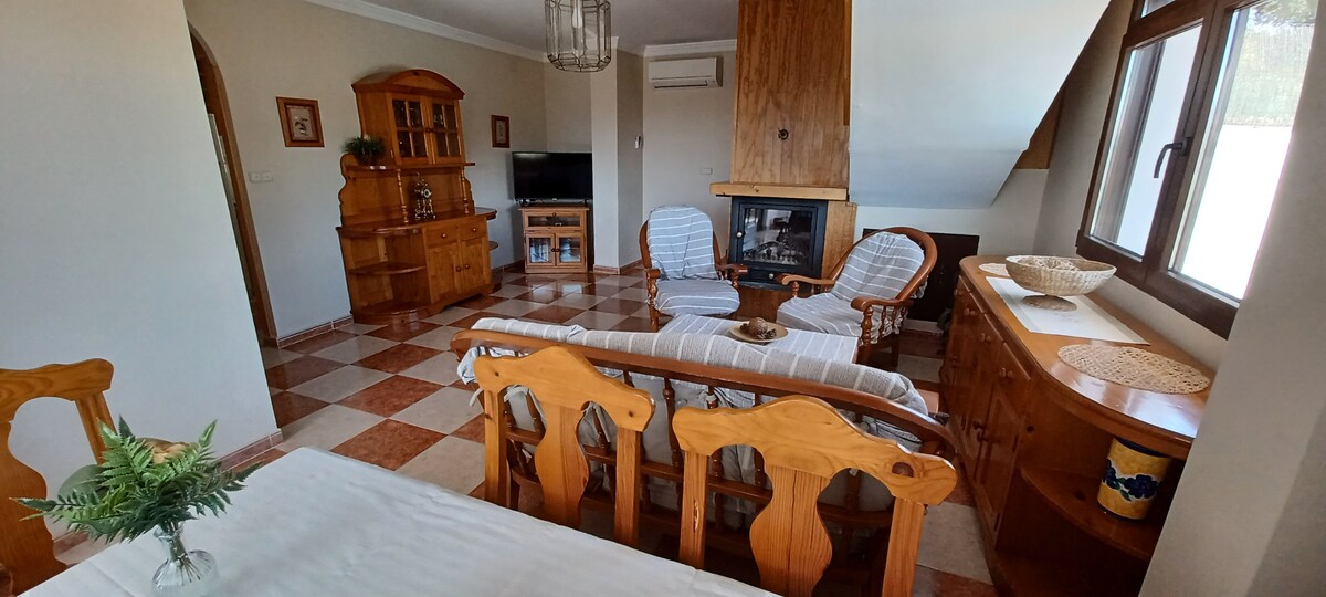 Dieses Haus zeichnet sich durch seine Innenhofterrasse mit privatem Pool und Grill aus. Der Tisch mit Stühlen unter der Veranda lädt dich ein, die Natur zu genießen, während die 2 Hängematten perfekt sind, um die andalusische Sonne zu genießen. Im Inneren verfügt das Schlafzimmer über ein extragroßes Bett mit der Möglichkeit eines Zustellbetts oder eines Babybetts. Das Wohnzimmer, geschmückt mit lokaler Handwerkskunst, verfügt über ein Sofa, einen Smart-TV und einen Kamin (Brennholz im Preis enthalten). Das Wohnzimmer öffnet sich zur voll ausgestatteten Küche.