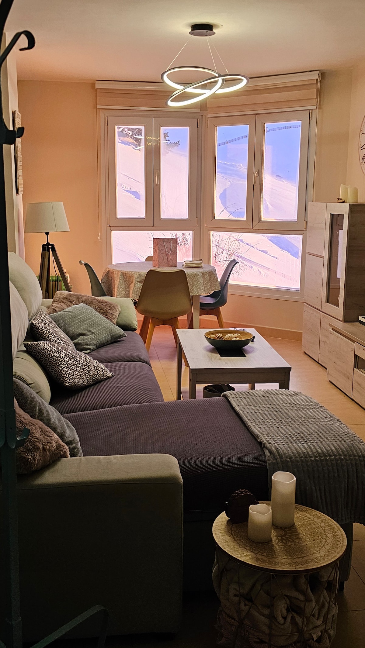 Schöne Wohnung, Gebäude Miramar Ski Sierra Nevada. FÜHLEN SIE SICH WIE ZU HAUSE. Helle Wohnung, gemütliches Wohnzimmer zum Ausruhen mit der Familie oder Freunden. Blick auf die Berge. Voll ausgestattete Küche. Alles von guter Qualität Sie verfügt über einen elektrischen Kamin, 55"-TV im Wohnzimmer, TV im Hauptschlafzimmer. WLAN. Das Gebäude verfügt über eine Tiefgarage, einen beheizten POOL, der nur in der Skisaison geöffnet ist, und einen Fitnessraum. Skiraum. In der Nähe der 1. Haltestelle des Sessellifts.