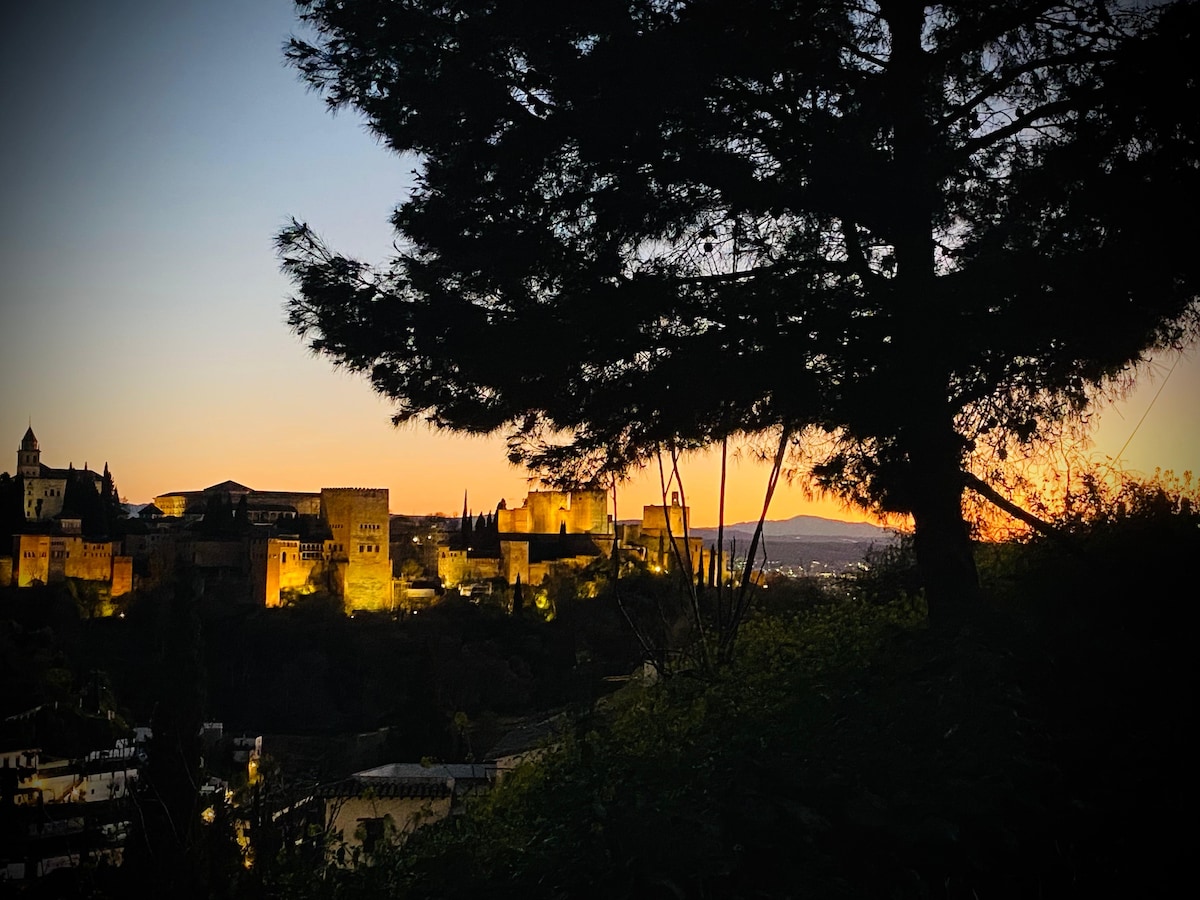 Helle Höhle: Blick auf die Alhambra & private Terrasse.
