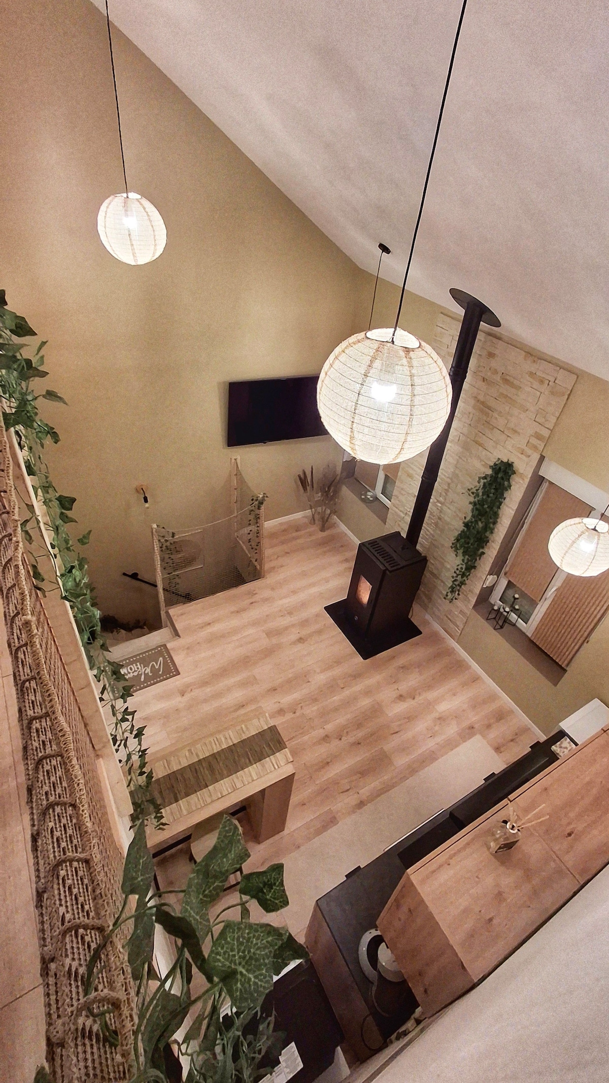 Der Wooden Moon wurde entwickelt, um Ihnen magische Momente der Entspannung zu zweit zu bieten. Alles wurde so geschaffen, dass Sie einen diskreten und ruhigen Eingang haben und in absoluter Privatsphäre entkommen können, während Sie gemeinsam den Wellnessbereich mit Infrarotsauna, das Spa auf der Terrasse mit Blick auf ein grünes Panorama, abgeschirmt von Blicken und eine Cocooning-Ecke im Freien am Feuer genießen. Alles steht Ihnen zur Verfügung, damit Sie an nichts anderes als Ihr Wohlbefinden denken müssen.