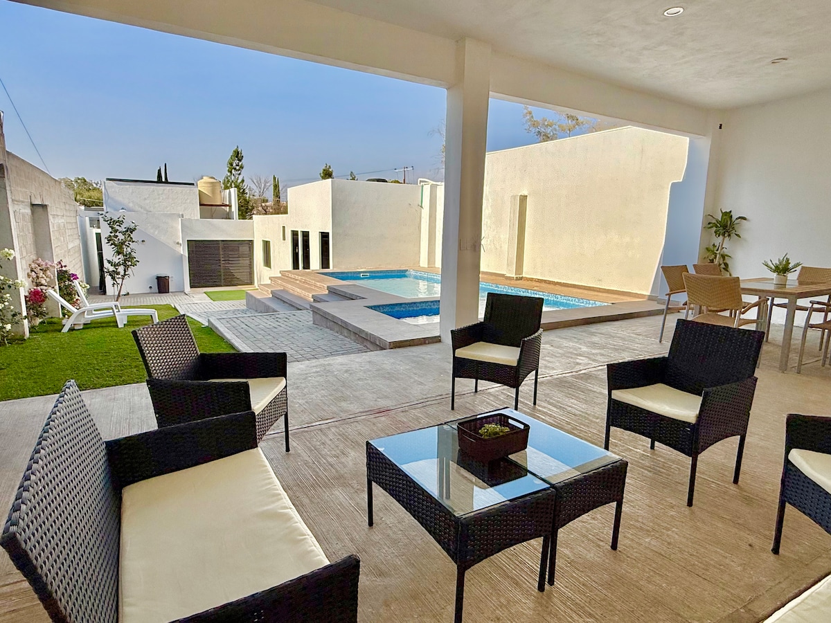 Geräumiges Landschaftshaus mit allem Komfort für einen ausgezeichneten Aufenthalt. Das Erdgeschoss verfügt über Annehmlichkeiten; Fußballplatz, Grill, Palapa, Badezimmer, Duschen, Ankleideräume, Pool, Dampfbad, Temazcal, Gärten und Zugang für Fahrzeuge. Im Obergeschoss finden Sie den Ruhebereich mit geräumigen Zimmern, Badezimmern, Esszimmer und einer voll ausgestatteten Küchenzeile mit einem spektakulären Blick auf die umliegenden Grünflächen. Ohne so weit von der Stadt entfernt zu sein, werden Sie es sicher genießen. Wir warten auf dich!