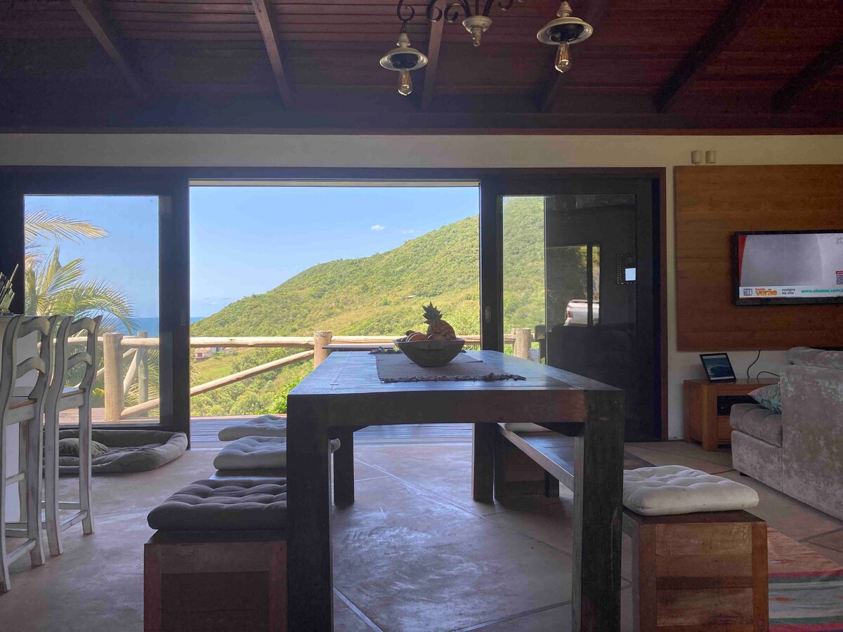 Amplia casa a 400 mts. de la playa y a 100 mts. del centrinho. Capacidad máxima para 6 personas. Acogedora y confortable. Excelente vista a la Laguna de Ibiraquera en el deck. Mirador en el punto más alto del morro con vistas al mar. Dormitorio principal en suite con cama matrimonial (sin A/C) , 1 dormitorio con 5 camas individuales y baño externo. Entrepiso con 1 cama doble. Living y cocina. Ducha exterior y parrilla. Deck externo. Estacionamiento privado para dos autos. Wi-Fi bueno y seguro.