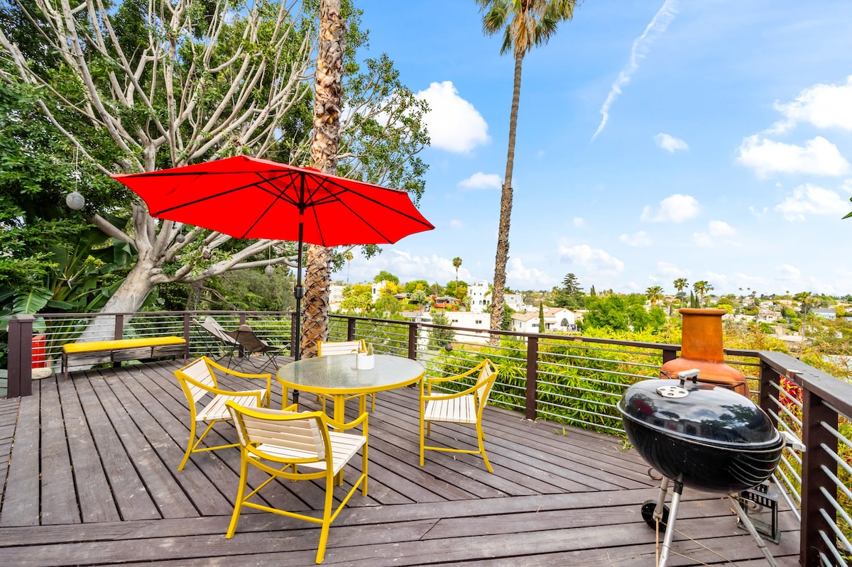 Genieße erfrischende Getränke im üppigen Garten unter einem riesigen Magnolienbaum. Obwohl dieses Haus aus der Mitte des Jahrhunderts einer stilvollen Renovierung unterzogen wurde, bleibt der spanische Einfluss in den Torbögen und dem atemberaubenden Wohnzimmerfenster erhalten. Das Haus liegt einen Block vom Zentrum von Silver Lake entfernt, das als eines der angesagtesten Viertel in den USA gilt. Das Haus ist perfekt, um Freunde und Familie zu unterhalten, und du wirst sicher magische Erinnerungen an deinen Besuch in LA schaffen.