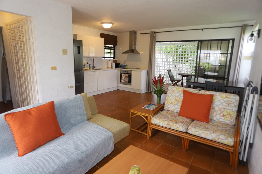 A cozy self-contained one-bedroom cottage in a private garden setting situated behind the main house on the grounds of our home - across the road from the beautiful Little Welches Beach on the South Coast, just west of Oistins. This cute holiday home is spacious, functional, tastefully furnished in a tropical/coastal island style and is well-maintained. Conveniently located within walking distance of the essential amenities, with onsite parking and easy access to public transport and highways.