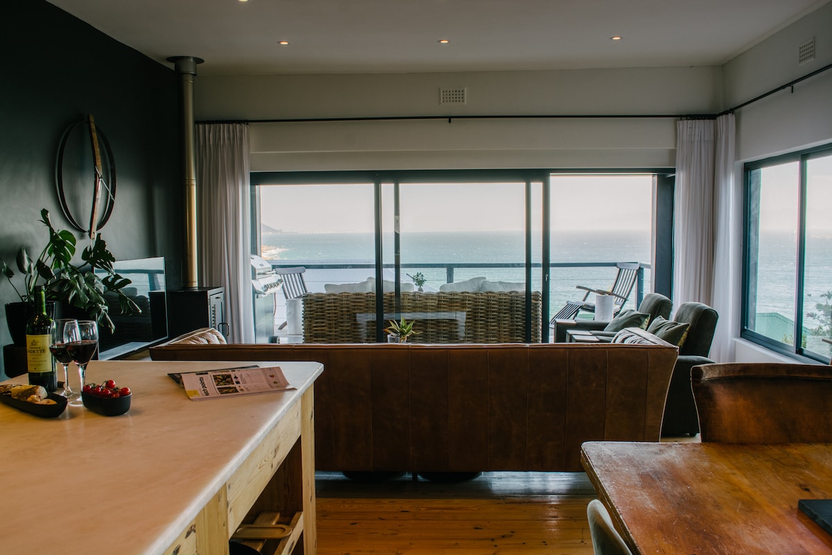 Mit Blick auf die wunderschöne False Bay bietet das ruhige Kelp House direkten Blick auf Brecher, Felsbrocken und Seetangbetten. Ruhige Nachbarschaft. Atemberaubender Meerblick von 2 Schlafzimmern und einem geräumigen, offenen Wohnzimmer, Küche und Essbereich, mit Hangklip über die Bucht sichtbar. Genieße schöne Sonnenauf- und -untergänge sowie Mondaufgänge auf dem großen Deck mit Essbereich im Freien, Feuerstelle und Grill. Nur 5 Gehminuten zur Küste, 15 Gehminuten zu einem Badestrand und 5 Gehminuten die Straße hinauf zu einem Bergweg.