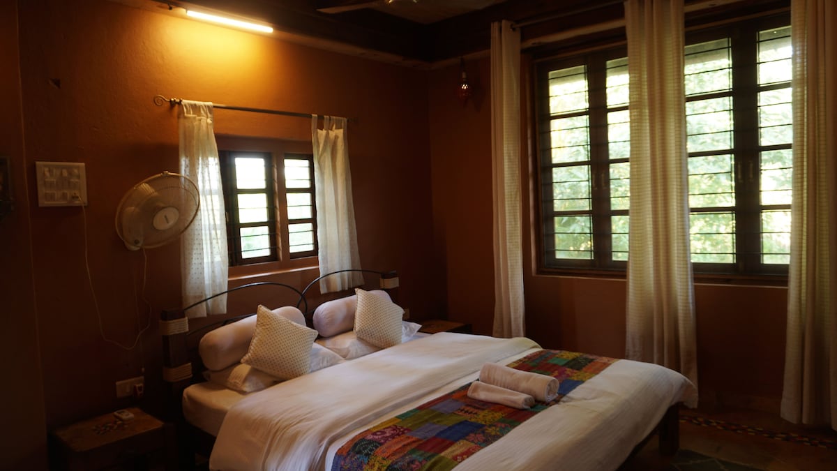 Die Loja (Geschäft/Geschäft auf Portugiesisch) am Ufer war ein Handelsposten. Canoas (Boote) tauschten Salz und Fliesen gegen landwirtschaftliche Produkte. Nach der Restaurierung ist es jetzt ein eigenständiger Raum in der gleichen ländlichen Umgebung am Wasser, ruhig und doch nur 20 Minuten von Panjim entfernt. Es bleibt ein bewirtschafteter Bauernhof mit normalen landwirtschaftlichen Aktivitäten. Erlebe Goa vor langer Zeit mit Spaziergängen am frühen Morgen, Radfahren oder einfach nur Naturbeobachtung.