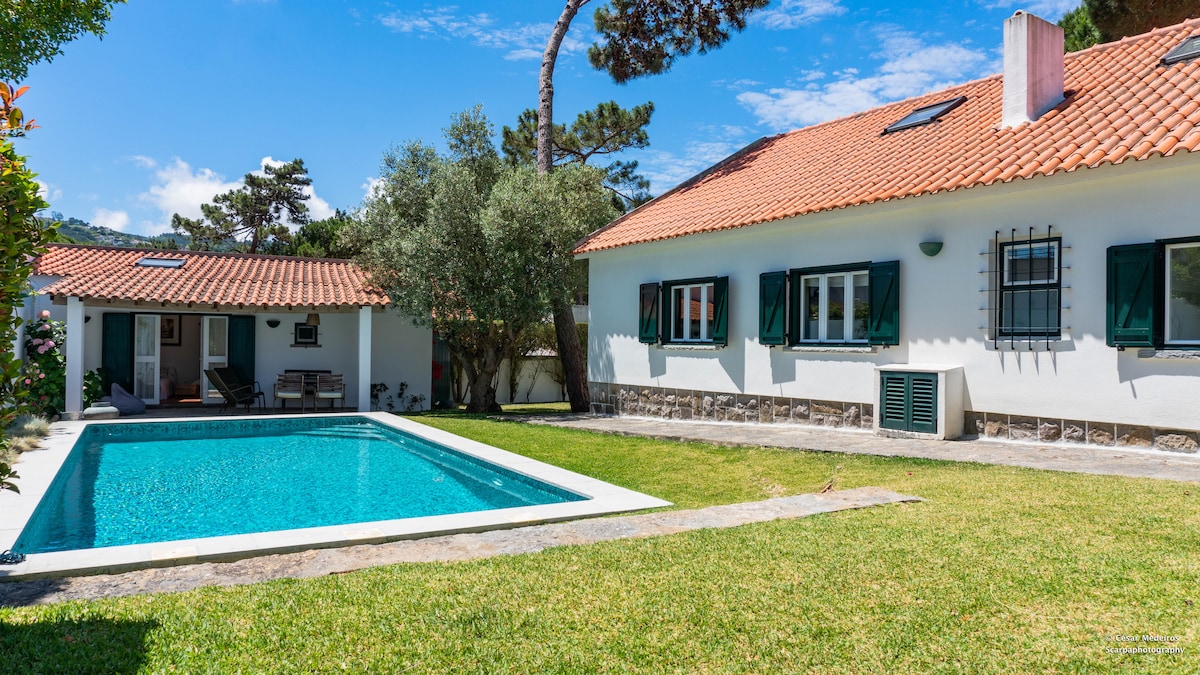 Komm in unsere Villa und verbringe die beste Zeit deines Lebens mit deiner Familie, deinen Freunden oder Arbeitskollegen! Unsere fantastische Villa mit Pool befindet sich an einem der berühmtesten Orte des Naturparks Sintra-Cascais und ist von einem erstaunlichen Garten umgeben, um deinen Aufenthalt wirklich unvergesslich zu machen! DU WIRST LIEBEN: - den Komfort des Hauses - Die Authentizität der Natur - Die lokale Gastronomie - Die unglaublichen Aromen des Meeres Finde oben heraus, wer die berühmten Schauspieler waren, die ein romantisches Mystery-Drama gedreht haben!