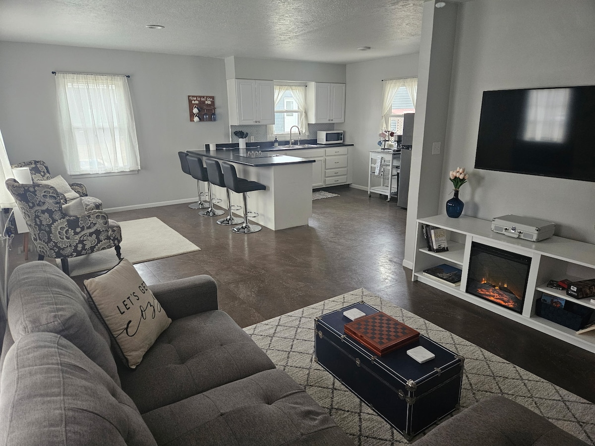 Modernisierte Wohnung mit zwei Schlafzimmern, voll ausgestatteter Küche und Wohnzimmer, nur einen Block vom Dordt, dem Siouxnami Waterpark und dem ASB Sports Complex entfernt. Diese geräumige Eigentumswohnung verfügt über zwei Queensize-Betten und ein Doppelbett, sodass bis zu fünf Personen bequem Platz finden. Die Küche verfügt über einen Herd, einen Kühlschrank, eine Mikrowelle, eine Keurig, eine Kaffeemaschine und einen Toaster sowie alle Töpfe, Pfannen und Geschirr, die du benötigst. Es gibt auch eine Waschmaschine/Trockner, Highspeed-WLAN, 42-Zoll-Fernseher mit Roku und Parkplätze in einer angeschlossenen Garage.