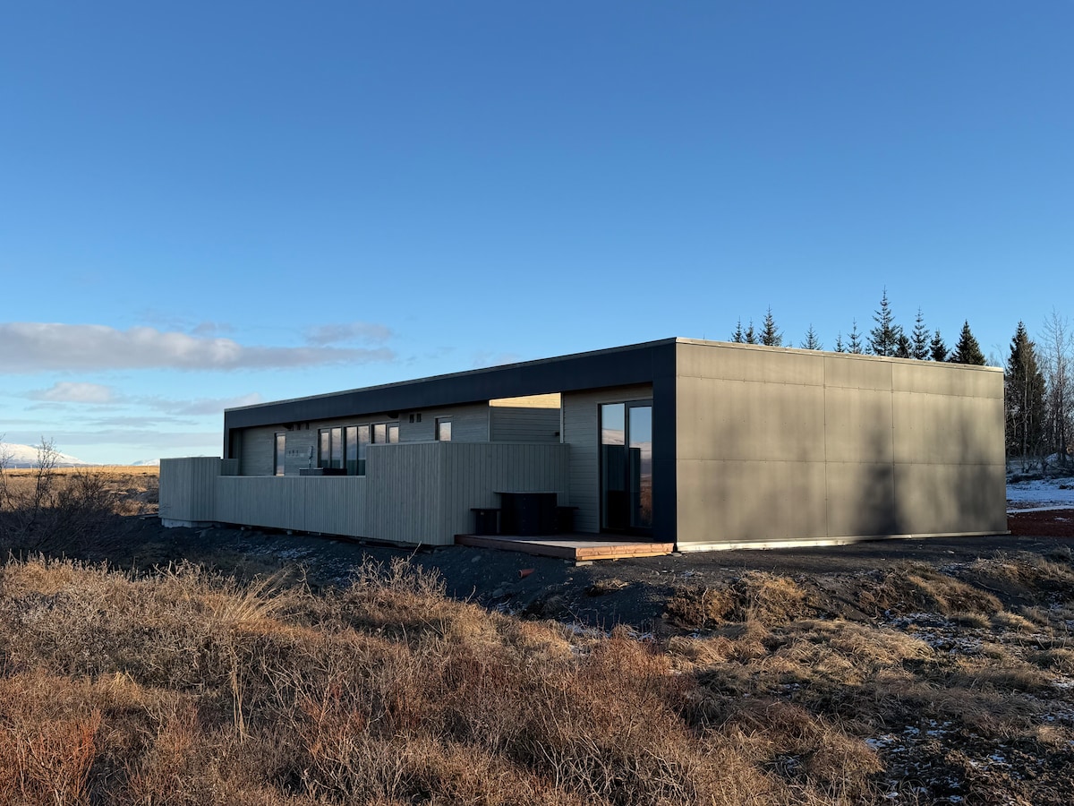 Dieses Luxushaus befindet sich an einem schönen privaten Ort mitten im Goldenen Kreis. Genießen Sie die Nordlichter ohne Lichtverschmutzung. Wir wollen großen Komfort für unsere Gäste, alle Betten sind mit hochwertiger Bettwäsche von Lin Design. Die Küche ist gut ausgestattet. Die Terrasse ist mit Möbeln und einem Weber-Gasgrill ausgestattet. Ein kleiner Fluss mit Forellenfischen ist in der Nähe und unsere Gäste sind herzlich eingeladen, zu fischen (inklusive). Wir haben viele Pferde und Gäste können gerne einen Blick darauf werfen.