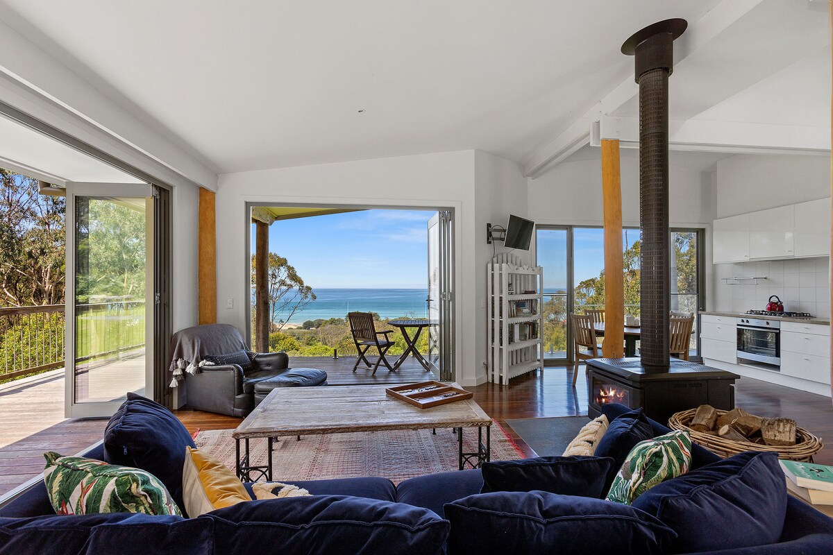Nothing says ‘Escape’ more than a luxury pad with jaw-dropping views across Bass Strait. Bass Dreaming is aptly named – a dreamy location just a short walk to beautiful Skenes Creek beach and a dream of a home that will help you unwind and get on the road to rediscovery. Superb entertaining facilities abound with a butler pantry spilling out to an open-plan kitchen that will speak to the home chef at your party. Tastefully decorated and furnished with an eye for design.