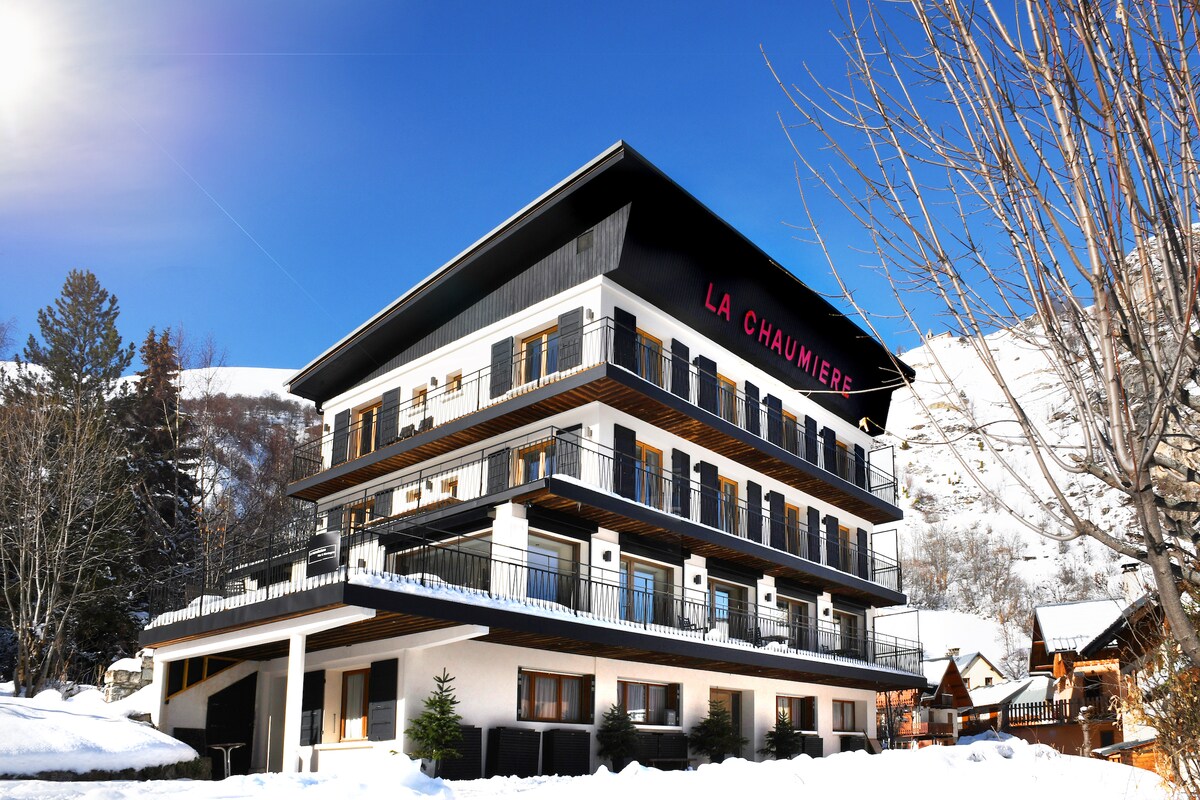 Willkommen im dritten und letzten Stock der Chaumière in Valloire. Dieses Gebäude, das 2018 komplett renoviert wurde, bietet Ihnen eine außergewöhnliche Lage im Herzen des Dorfes. Das Hotel liegt überhängend, 100 m von Carrefour Montagne und 300 m von den Schneefronten und allen Geschäften entfernt, bietet La Chaumière einen atemberaubenden Blick auf die OSTSEITE auf der Ostseite auf der Station und auf der SÜDSEITE des Galibier für Sonnenschein den ganzen Tag über.