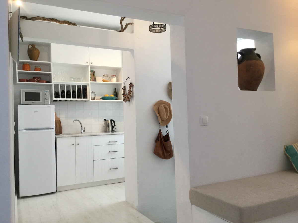 Lebe den Traum im Onar House (78 m²) mit atemberaubendem Blick auf das Meer und Chora! Brandneu, mit einem gemütlichen Wohnzimmer, einem großen Essbereich, einer voll ausgestatteten Küche und Klimaanlage und einem Fernseher in jedem Zimmer. Genießen Sie den blauen Horizont von unseren 2 Terrassen mit Premium-COCO-MAT-Matratzen. Mit Privatparkplatz und nur 5 Minuten vom Markt entfernt, trifft Luxus auf Tradition, wo die ganze Stadt und die Ägäis zu Ihrer persönlichen Kulisse werden! Ein idealer, geräumiger Rückzugsort für einen unvergesslichen Aufenthalt. Willkommen!