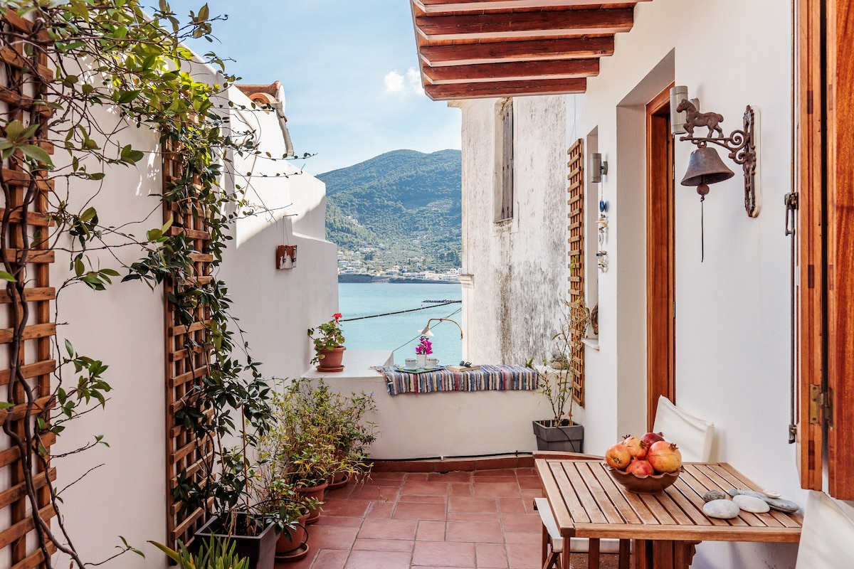 Genieße deinen Aufenthalt auf der Insel Skopelos und lebe das Dorfleben in einem traditionellen und ruhigen Haus. Wache jeden Morgen mit dem Grün der Berge und dem Blau des Meeres vor dir auf. Das Haus befindet sich oben im Dorf in einem sehr ruhigen Viertel, autofrei. Dort kannst du zu Fuß gehen und den Charme des alten Dorfes genießen.