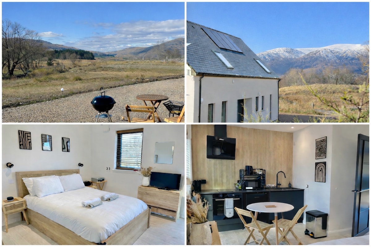 Diese besondere Unterkunft hat einen ganz eigenen Stil. Sie liegt auf einem Hügel mit herrlichem Blick über den Sound of Sleat und bietet einen atemberaubenden Blick auf die Inseln Eigg und Rum und in der Ferne den westlichsten Punkt Schottlands. Entweder sitzt und entspannt man draußen auf der Terrasse oder unten an der Feuerstelle und genießt die Ruhe und den Frieden. Genieße deine erholsame Auszeit und mach es dir drinnen gemütlich mit Fußbodenheizung und einem wärmenden Schein vom Holzfeuer.