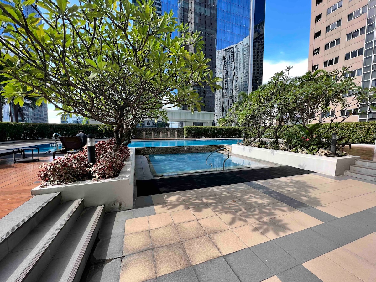 Fast Check in. No unnecessary waiting.Great for holiday, business, transit. Very close to airport. Centre of Uptown BGC. Everything you need is within 100m. Very walkable streets. Feels like NYC or Singapore. Uptown Mall has Branded Shops to 24hr food and Cinemas. 3 supermarkets nearby. Outdoor dining bistros, XYLO club. 50" Smart tv GFiber - 200Mbps Fridge Microwave Toaster Kettle Dining table Sofa Double size bed Hot/cold shower Towels Tissue Hair Dryer Pool (Tue to Fri)