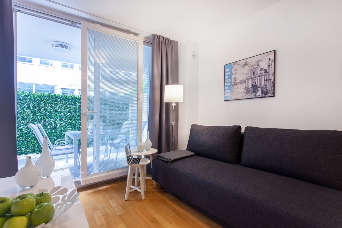 Brand new, perfectly located, modern and fully furnished luxury apartment. Less than 10 mins to the Ljubljana’s most charming part of the old town and just a few minutes walk from the main bus/train station. Free secure off-street parking in the garage under the apartment. Complimentary bikes and a beautiful private patio with outdoor sitting, perfect for lazy morning breakfasts, lounging and dining. Self-checkin. Ground floor-direct access. LONG TERM STAYS WELCOME.