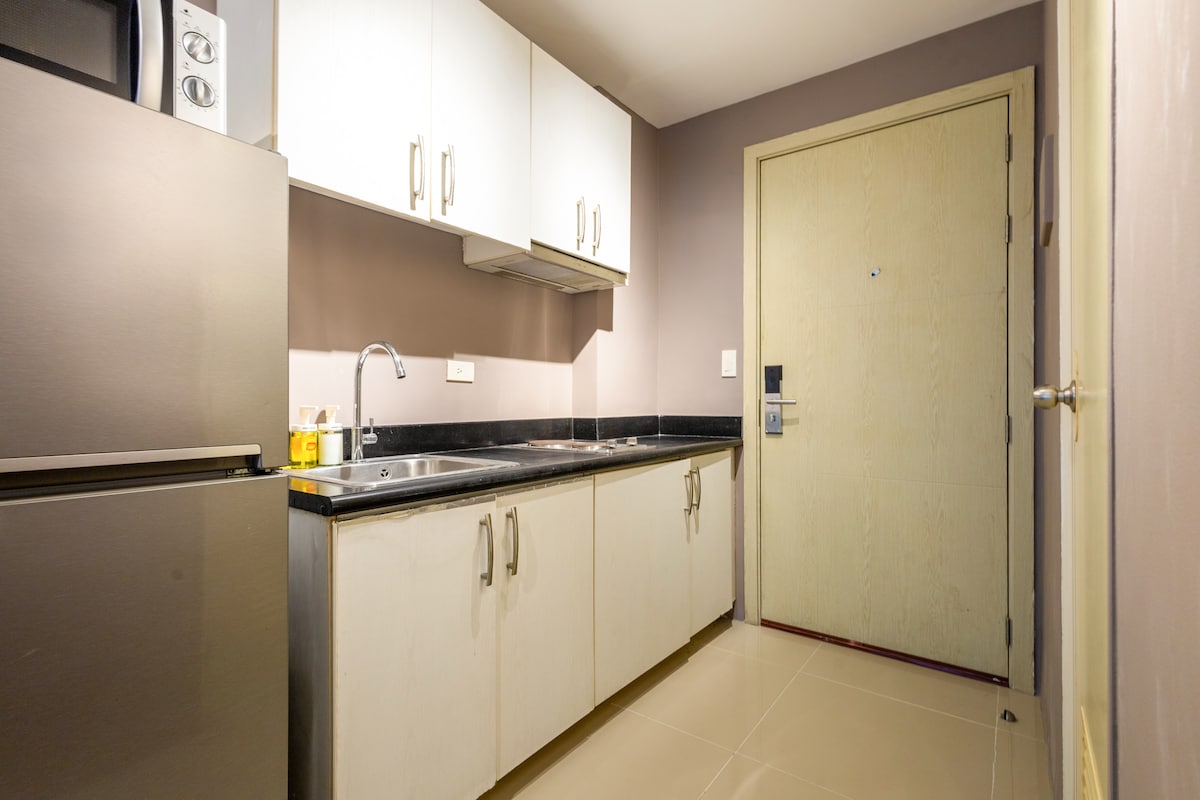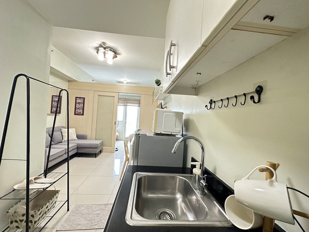 Genieße das einfache Leben in dieser ruhigen und zentral gelegenen Unterkunft. Größe der Einheit: 28 m² Ausstattung der Einheit: - 43-Zoll-Smart-TV mit Netflix - 50 Mbit/s WLAN-Verbindung -Kühlschrank - Waschmaschine - Duschheizung - Mikrowelle - Split-Klimaanlage mit Fernbedienung - Elektroherd - Abendessen und Kochgeschirr Einrichtungen in der Nähe: - Makati Medizinisches Zentrum - Greenbelt Mall - Trident Tower - PB Com Tower - RCBC Plaza - Ayala Triangle - Philam Tower - SM Makati - MAPUA - Powerplant Mall - FEU Makati - KSA-Botschaft