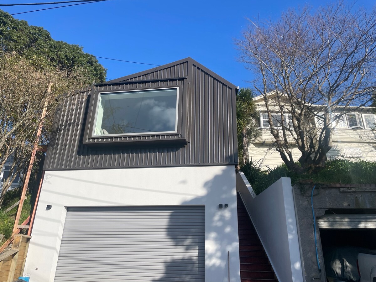 Unser brandneues Studio-Apartment ist ein privater, leichter und ruhiger Rückzugsort, nur wenige Fahrminuten oder Radtour von Wellington City entfernt. Setz dich in das riesige sonnige Erkerfenster, lehne dich zurück und entspanne dich in diesem ruhigen, stilvollen Raum. Kostenloses WLAN im gesamten Gebäude. Großzügige Rabatte für Wochen- oder Monatsgäste.