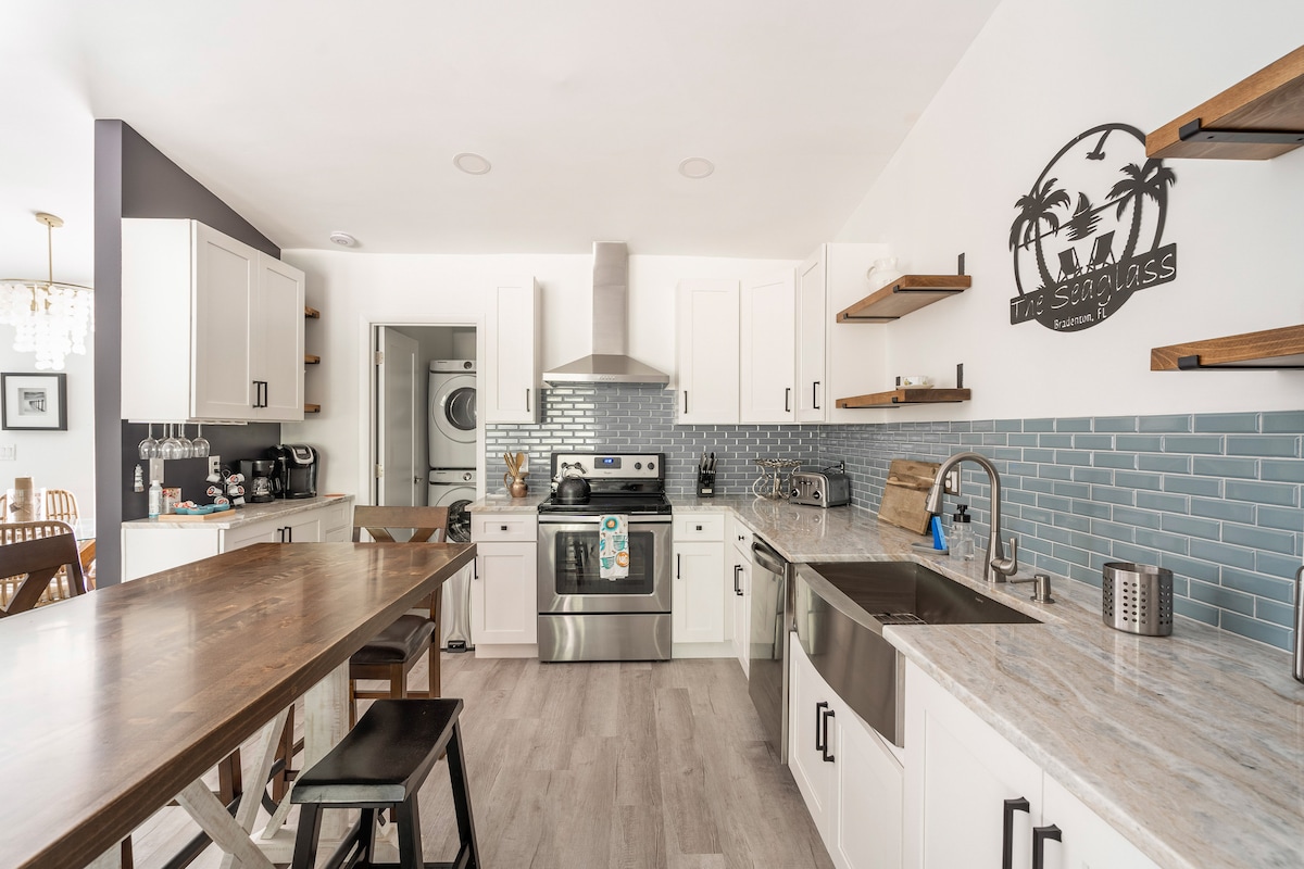 Whether you’re visiting for a wedding or simply looking for a beautiful place to unwind, Little Blue House Palmetto offers a thoughtfully designed retreat in a charming historic setting. This 1907 home has been renovated while preserving its original character. Ideal for families and couples seeking a peaceful stay, the home is near beaches, restaurants, and parks. Enjoy slow mornings and sunset views from the upstairs balcony, with sunshine and water just beyond.