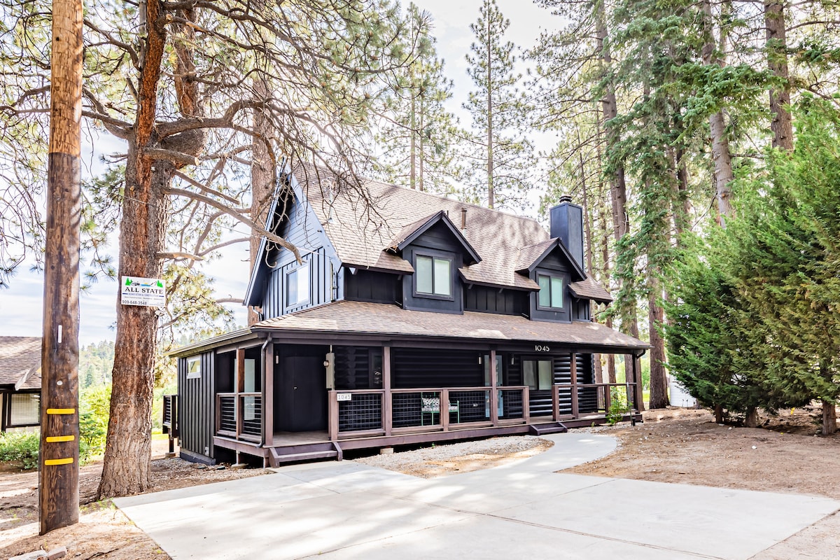 Willkommen im Midnight Chalet, einem modernen A-Rahmen in Big Bear Lake. Diese Hütte mit 2 Schlafzimmern und 1 Bad befindet sich in der Nähe von The Village und Lake. Das Haus verfügt über eine modernisierte Küche und ein Bad sowie eine fantastische Terrasse mit einer Feuerstelle und einem Grill! Die schöne Aussicht auf die Bäume und Berge im Hintergrund von unserem zweiten Stockwerk aus wird dich nie wieder gehen lassen wollen. Hänge draußen ab und grille, während du dich an der Feuerstelle entspannst, oder verbringe den Tag auf der großen Terrasse inmitten der Natur. Das ist wirklich ein Kurzurlaub für jede Jahreszeit!