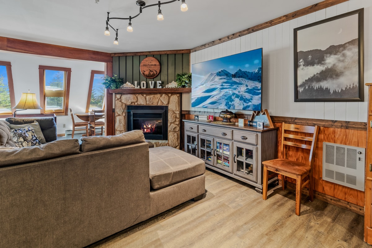 Completely remodeled studio. There is no better value in the Snowshoe area. The affordable option that won't leave you disappointed when you open the door. Cherry floors(lvt), pine walls, shaker cabinets, 58" Samsung TV, built in fireplace w/ walnut mantle, tons of lighting options, marble over sized bathroom sink, modern appliances, full kitchen. MLK and Pres weekend are also 3 day mins at the holiday rate Only these 3 weekends.