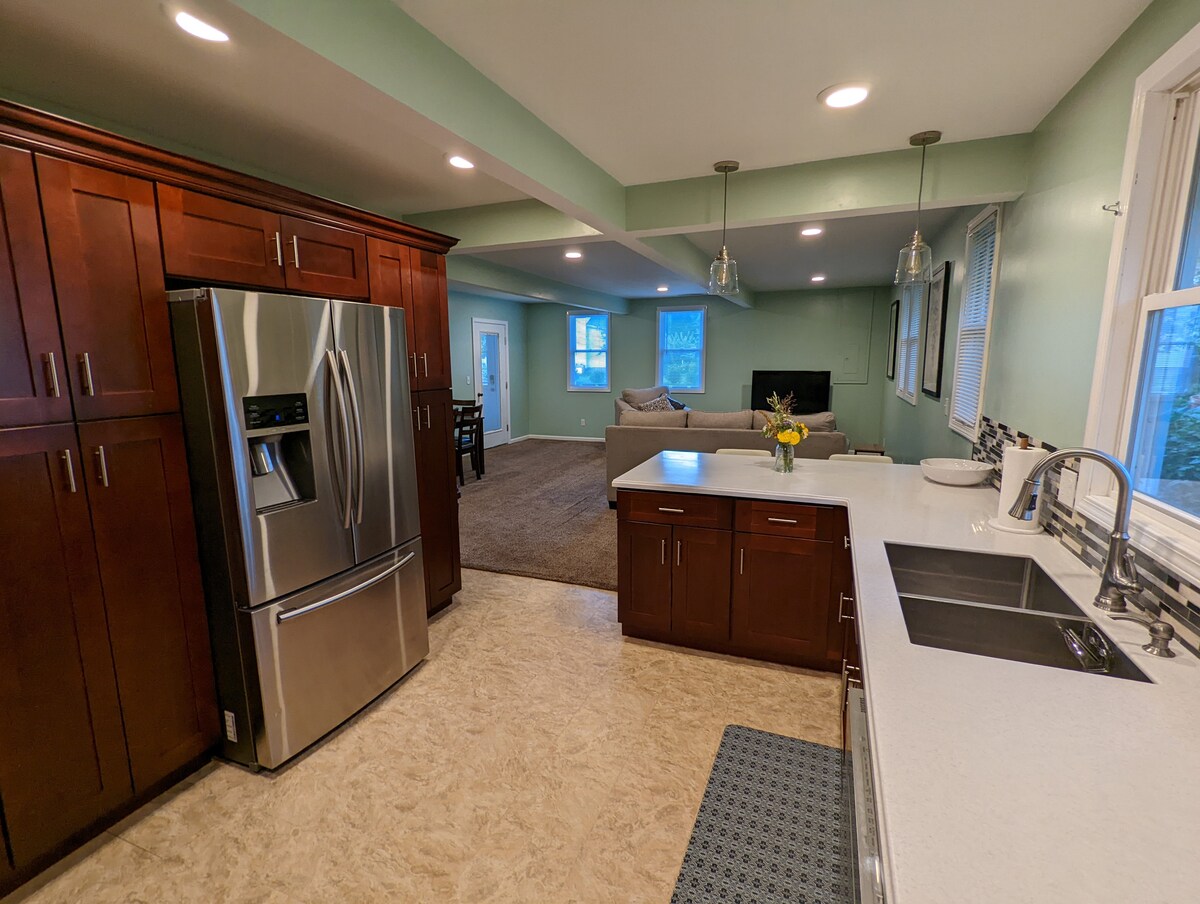 Eingebettet in eine ruhige Gemeinde in der Nähe des Soaring Eagle Casino & Waterparks, in der Nähe der CMU und mehrerer Golfplätze, bist du in einer perfekten Lage, um eine der Sehenswürdigkeiten des Mount Pleasant zu besuchen! Das Haus verfügt über ein lustiges Design mit zwei Schlafzimmern mit Casper Queen-Matratzen, zwei Badezimmern, einem TV-Raum, einem Esszimmer mit Sitzbereich, einer Küche, einer Waschküche, einer angeschlossenen Garage, einem Backdeck, um Ihren Morgenkaffee zu genießen, einem Essbereich im Freien und einer Feuerstelle, um die nächtlichen Sterne zu genießen.