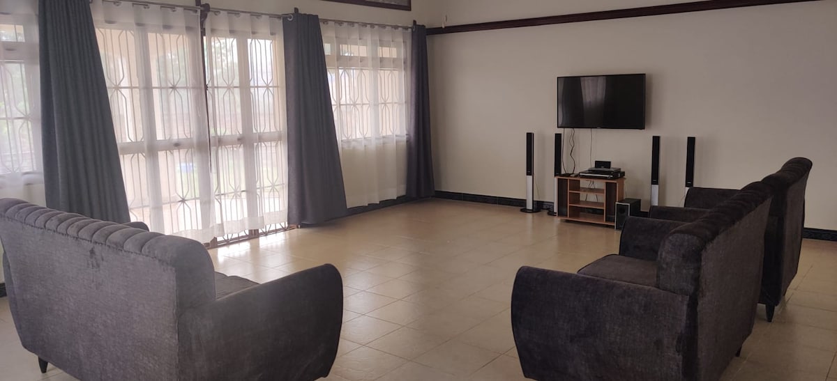 Bring die ganze Familie in diesen tollen Ort mit viel Platz für Spaß, einem sehr geräumigen Wohnzimmer, das in der Lage ist, eine kleine Party oder ein Familientreffen zu veranstalten. WLAN und ChromeCast-TV in einem sehr ruhigen und friedlichen gentrifizierten Viertel, nur 15 Fahrminuten von der Innenstadt von Kampala entfernt. Sehr große geräumige Schlafzimmer mit dem Hauptschlafzimmer mit sowohl einer Badewanne als auch mit separater Dusche, einem Kingsize-Bett und Queensize-Betten in den anderen beiden voll ausgestatteten Küche, alle in einem geschlossenen Gelände, kostenlose Parkplätze mit einer schönen Rasenfläche.