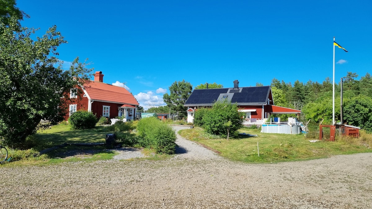 Njut av en genuin stuga - nära natur, hav och vackra sjöar! ✨ Boende Sov på mysiga loftet. Njut av den vidsträckta landsbygden. 🌿 Läge Havet, Sörsjön och Mörkö ligger 3 km bort. 10 min till Tullgarns slott eller charmiga Trosa. 🛠️ Unika upplevelser Slöjda, utforska promenadstigar eller hälsa på gårdens får. 🏡 Bekvämligheter Basutrustat kök med genuin känsla och eldstad gör din vistelse minnesvärd. Toaletten är av typen separett. 🎯 Personlig service Värden bor på gården och guidar dig gärna!