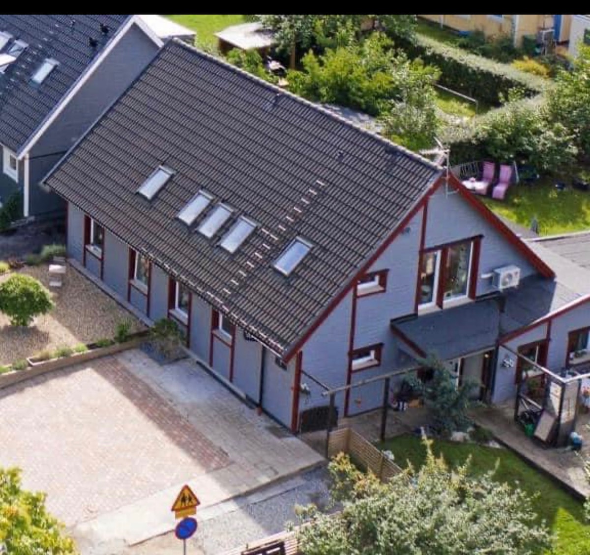 Hallo! Willkommen in dieser gemütlichen Villa in Trosa. Der Eigentümer hat drei separate Häuser, von denen eines als Studio genutzt wird. Der Eigentümer wohnt im Haupthaus. Und das Gästehaus ist hier, das in der Ankündigung steht. Es ist etwa 35 Quadratmeter groß, mit einem geräumigen Wohnzimmer mit einem Kamin und einer Miniküche mit einem kleinen Kühlschrank. Das Gästezimmer verfügt über eine separate Dusche und eine separate Toilette. Hier teilen sich die Gäste die Waschküche und den Außenbereich mit dem Eigentümer. Aber jeder hat seinen eigenen unabhängigen Außenbereich.