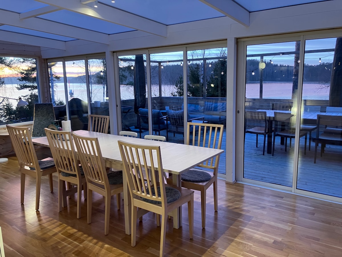 Hochmoderne Villa mit privatem Steg und Seegrundstück, 35 Minuten von Stockholm entfernt. Privater Sandstrand und Angelmöglichkeiten. Kamin, Sauna, holzbefeuerter Whirlpool und große Terrasse mit fantastischem Blick. Hauptschlafzimmer mit Bad, Carrara-Marmor. Gästehaus mit Schlafmöglichkeiten, max. 7 Gäste. Offener Grundriss, Stehtische, Rattanmöbel und Sonnenschirme. Gäste-WC mit Waschmaschine und Trockner. Ladestation für Elektroauto, FTX-Belüftung, elektronischer Safe und Codeschloss. Check-in 15:00 Uhr, Check-out 10:00 Uhr. Perfekt zum Entspannen
