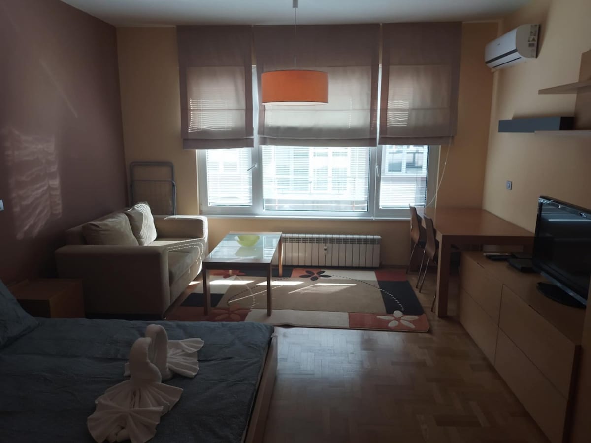Violet is a comfortable and practical apartment. It includes one bedroom, bathroom , kitchenette , seating area. The sofa stretches. WiFi connection is really fast, television. Violet offers you all needed conditions for you stay in Sofia. It is near metrostation, supermarkets and great reataurants. The location is in the centre of Sofia, so you can have some intersting walks around the arheological places.