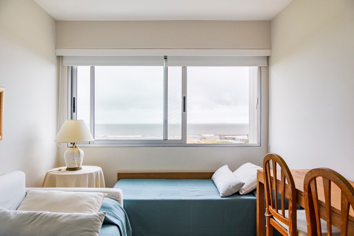 Entspanne dich in dieser ruhigen und eleganten Unterkunft. Genießen Sie einen einzigartigen Blick auf Punta del Este. Sie verfügt über ein (offenes) Schlafzimmer, ein Badezimmer, eine ausgestattete Küche, eine Klimaanlage, WLAN, einen Smart-TV usw. ein 2-Sitzer-Bettgestell und 2 Einzelmatratzen. Die besten Dienstleistungen; einschließlich Innen- und Außenpool, Grill, Garage, Mikro-Kino, Fitnessraum, Spiele im Freien für Kinder, Zimmer (Kinder, Jugendliche und Erwachsene) Fragen Sie mich.