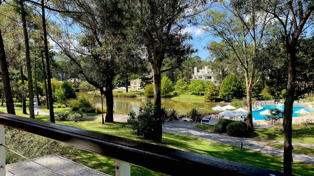 Disfrutá de una estadía única con la mejor vista del complejo, frente a la laguna, desde nuestra amplia terraza con parrillero. El apartamento ofrece un dormitorio, un luminoso living con sofá cama doble e individual, baño con bañera y acceso a todas las instalaciones de Solanas Resort: piscinas climatizadas y al aire libre, espacios para niños, amplias áreas verdes ¡y mucho más para disfrutar en familia o en pareja! 🌿✨
