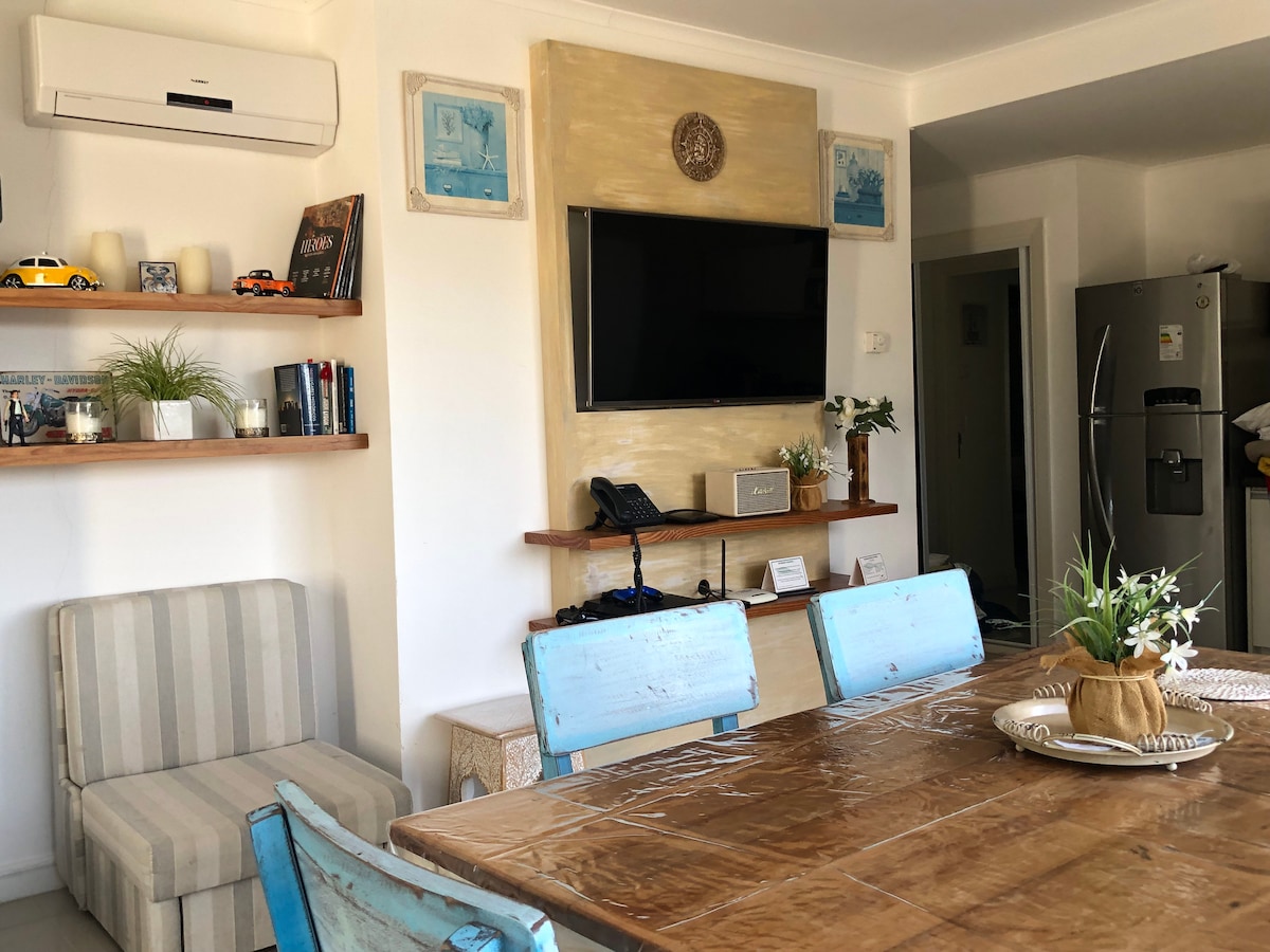 2 room apt perfect for 4 pple. Awesomely maintained and fully equipped. Daily cleaning service included and full access to Green Park + Solanas Vacation Club amenities and activities. Beach is 400 mts and you can also count on beach equipment (umbrella, chairs) during high season. 24hs Reception, parking, security. Extra mattress available in case more people is coming. Washing machine in the apartment.