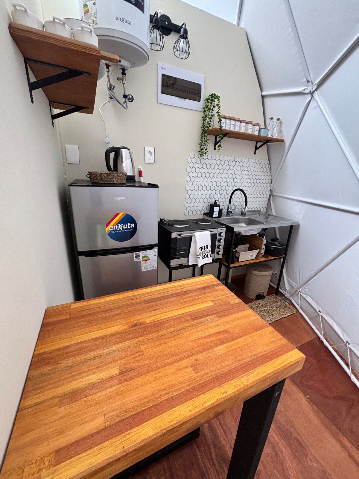 Conecta con la naturaleza en esta escapada inolvidable. En TimoDomo está todo pensado para que tu estancia sea una experiencia única. Es un domo geodésico inmerso en un área silvestre a 100 metros de la playa con todas las comodidades. Contamos con Tina nórdica y camastro 2 plazas. Ven a conectar para desconectar.
