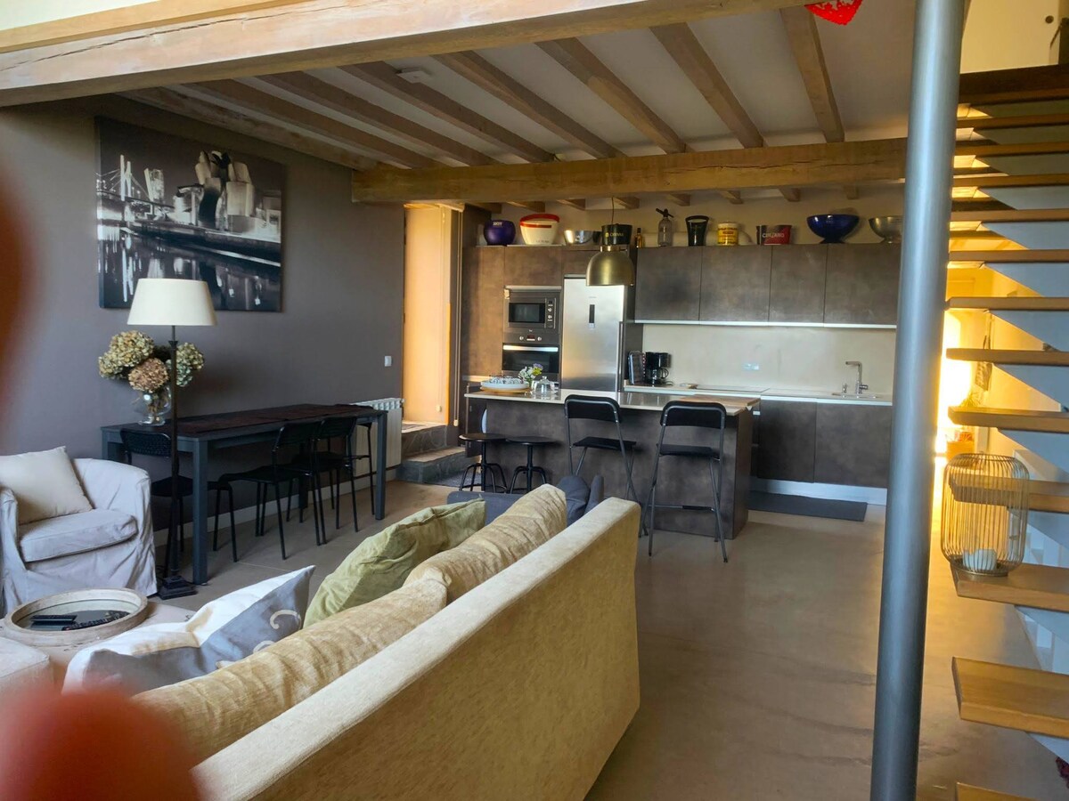 You'll love our charming wooden and stone country house right in the heart of Liérganes, with panoramic views. This bright and peaceful three-story house has been recently renovated and tastefully decorated. It's a cozy space with exposed wooden beams, a fireplace, and a small patio perfect for relaxing after a day at the beach or in the mountains. It's ideal for families or groups of friends. The house comes fully furnished, including kitchen and bathroom amenities.