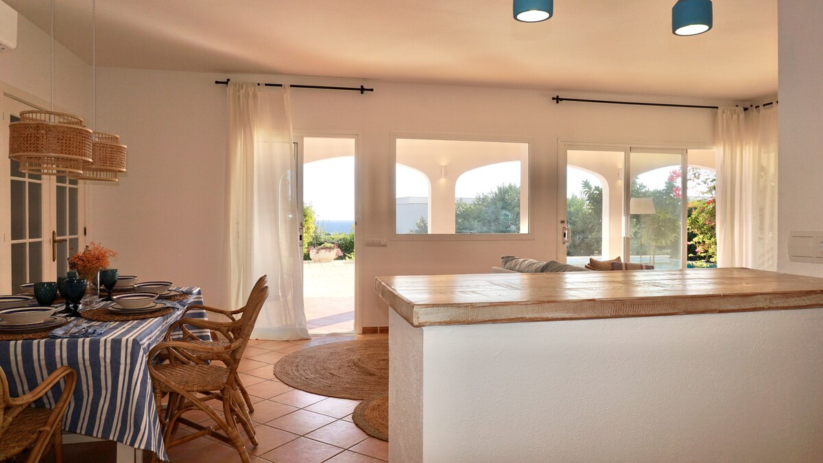 This accommodation exudes tranquility: relax with the whole family! A large porch surrounds much of the villa, allowing you to enjoy beautiful distant sea views from the outdoor living area. The peaceful setting invites you to unwind and soak up the Menorcan sun. The garden and the entire house are equipped with amenities perfect for barbecues and relaxing afternoons. The house consists of 3 double bedrooms and 3 bathrooms, only one of the bedrooms is a suite.