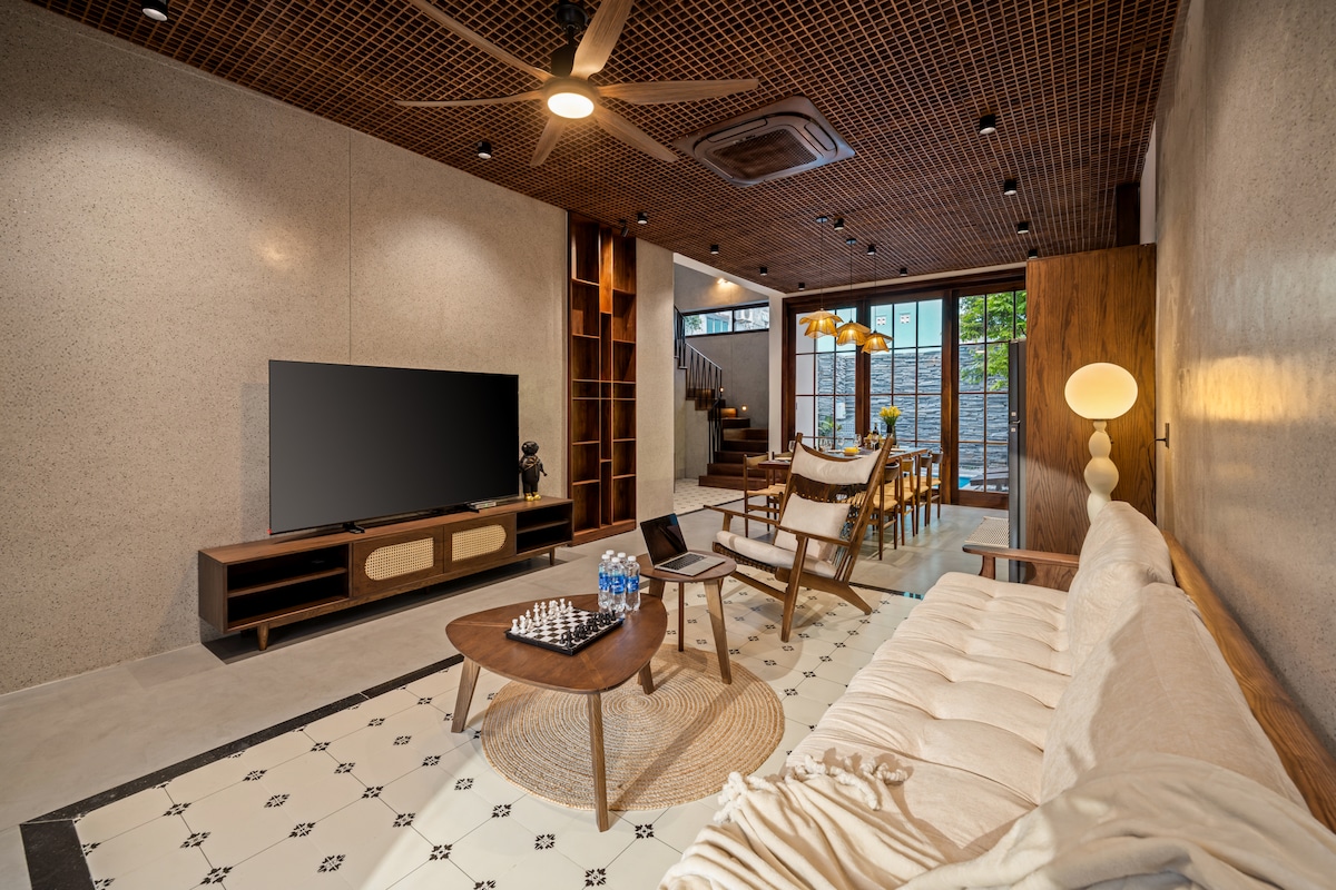 *Tauche ein in die Natur des Sơn Trà-Bergs – der grünen Lunge von Da Nang City. Eine Villa verfügt über 2 Schlafzimmer und 1 Dachboden mit verfügbaren Annehmlichkeiten: *Natürlicher Wasserfall-Swimmingpool * Unterhaltungsraum im Dachgeschoss, Platz für Kinder und Eltern, um die Wolken und Berge zu genießen, Cartoons mit verfügbarem Projektor und Bildschirm zu sehen, Bluetooth-Lautsprecher, um Musik zu hören **Himalaya-Salzsauna **Entspannender Massagesessel, Heimtrainer *Kostenloser Flughafentransfer für Gäste, die ab 3 Nächte bleiben