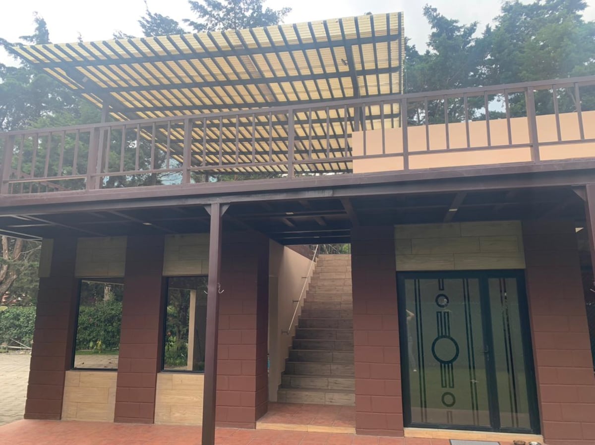 Voll zugänglich für alle Arten von Fahrzeugen, direkt im Dorf Apaneca, abgegrenzt, um Sicherheit und Privatsphäre zu bieten, bietet unser Anwesen alles, was wir von einem komfortablen Ort zum Ausruhen erwarten, große Gärten, Grills in verschiedenen Umgebungen, Holzofen, Tischtennis, Tischfußball, Kinderbereich, einen schönen Wasserfall, Zypressenwald mit Hängematten und innen geräumige Zimmer, Badezimmer mit heißem Wasser, geräumige Zimmer, voll ausgestattete Küchen, Internet und Kabel.