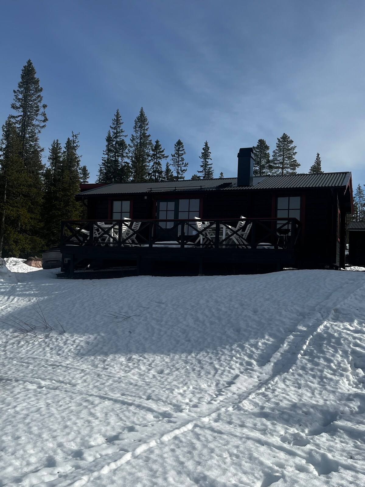 Het berghuisje ligt op een rustige, ruime locatie en is een ideale plek om volledig tot rust te komen en te genieten van de omringende natuur. Buiten vind je een groot terras met comfortabel meubilair en houtkachel, een grasveld, een sauna en een authentieke Scandinavische grillhut met open vuur en warme rendierhuiden. Een heerlijke plek om te ontspannen, te koken en te eten. Vanuit het huisje wandel je zo het bos in of naar schilderachtige zwem- en vismeertjes. Wintersport volop in de winter!