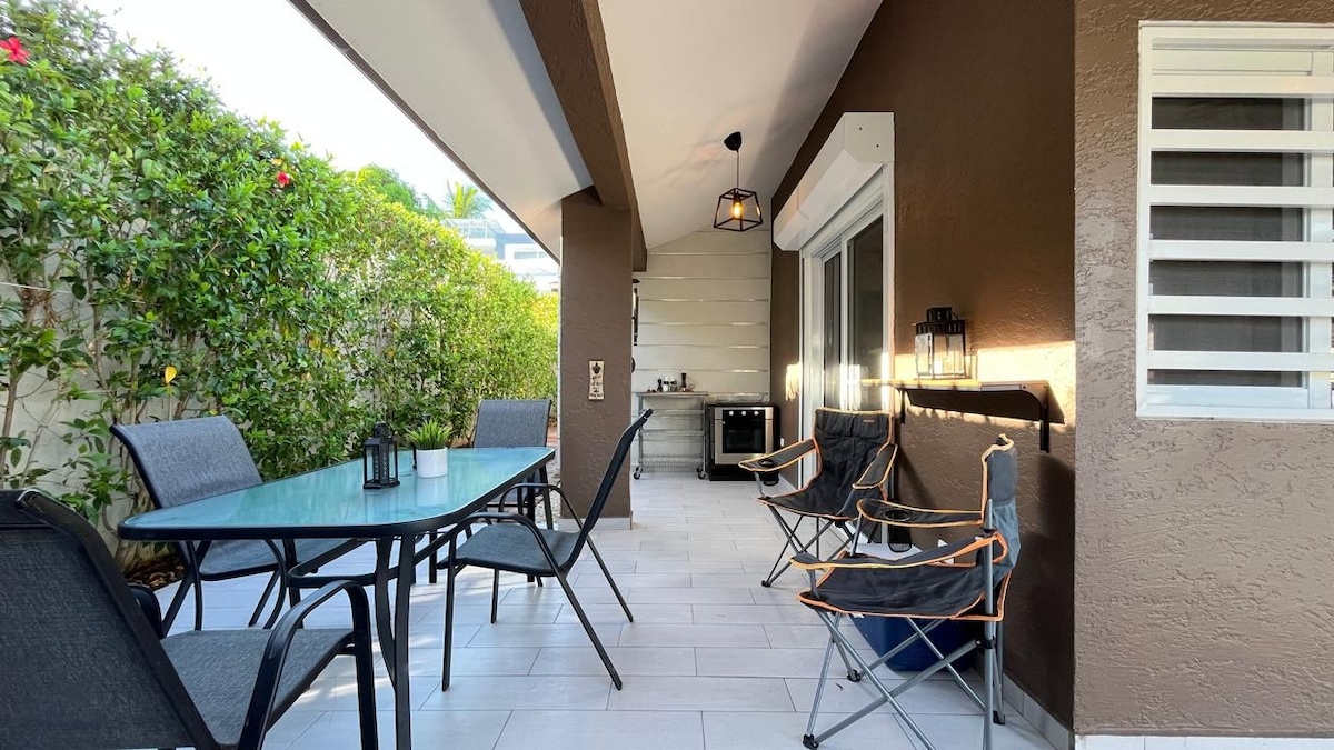 Entfliehe ins Paradies in unserer schönen Wohnung im Herzen von Cabarete. Nur 3 Gehminuten vom Hauptstrand und Supermarkt entfernt, hast du alles, was du benötigst, in Reichweite. Entspanne dich in deinem privaten Garten, der sich perfekt zum Sonnenbaden oder Essen eignet. Bleibe mit High-Speed-Internet in Verbindung und genieße den Komfort von Klimaanlagen in beiden Schlafzimmern. Die Wohnung ist nur eine Einheit neben einem Familienhaus. Sie befindet sich in einer schönen, ruhigen Wohngegend mit 24-Stunden-Sicherheitsdienst. Entdecke die Restaurants und Läden in der Nähe!