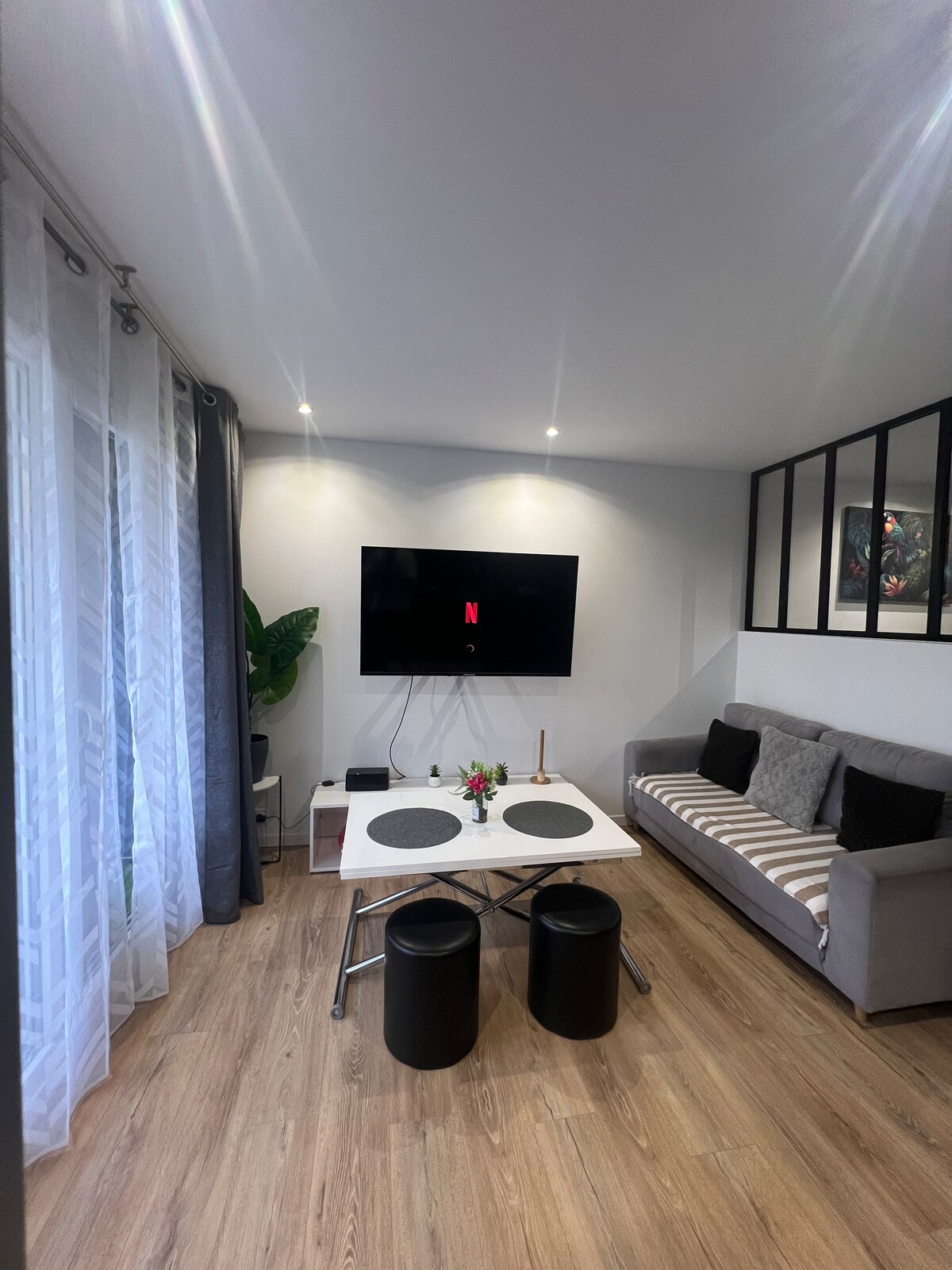 LA PARENTHÈSE c’est un appartement de 50m2 refait à neuf avec un goût soignée idéalement située tout proche du jardin des plantes et de toutes commodités convient pour vos petit et longs séjours Notre appartement est parfait pour les couples,collègues,familles (avec au sans enfants) LA PARENTHÈSE se trouve au deuxième étage d’une résidence calme de quatre étages avec ascenseur Nous sommes équipés d’internet haut débit et wifi 6 et accès libre à Netflix