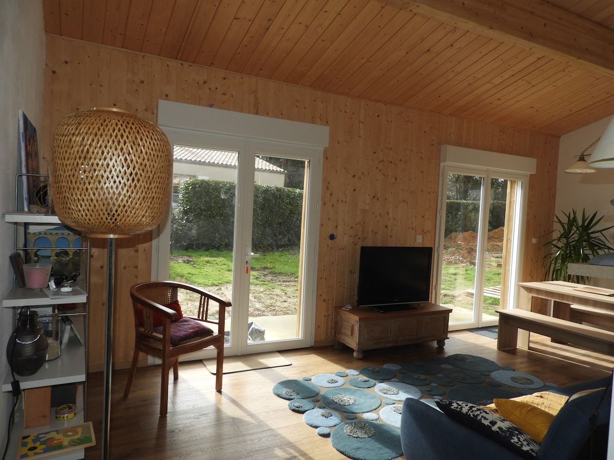 Maison de 26m2 au calme, avec grand espace en hauteur. Votre arrivée est à l'heure que vous le souhaitez et en toute autonomie. Elle se compose d'une cuisine avec plaque de cuisson, micro onde, cafetière senseo, frigo, bouilloire et le nécessaire pour cuisiner ainsi qu'un adoucisseur d'eau. Vous disposerez d'un canapé confortable et d'une literie de qualité ( draps et serviettes inclus, lit fait à votre arrivée ). -Écran plat de 139cm. -Décoration design. -Wifi Fibre.