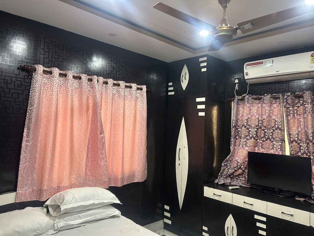 Welcome to your comfortable home in Greenfield City, Behala. This spacious 2BHK apartment is perfect for families, couples, and business travelers looking for a relaxed and well-connected stay. Both bedrooms are fully air-conditioned, ensuring a comfortable sleep after a long day. The living room features a large 50-inch Smart TV, a comfortable sofa, and a warm, inviting setup to unwind or enjoy your favorite shows. A dedicated dining table makes it easy to enjoy meals together.